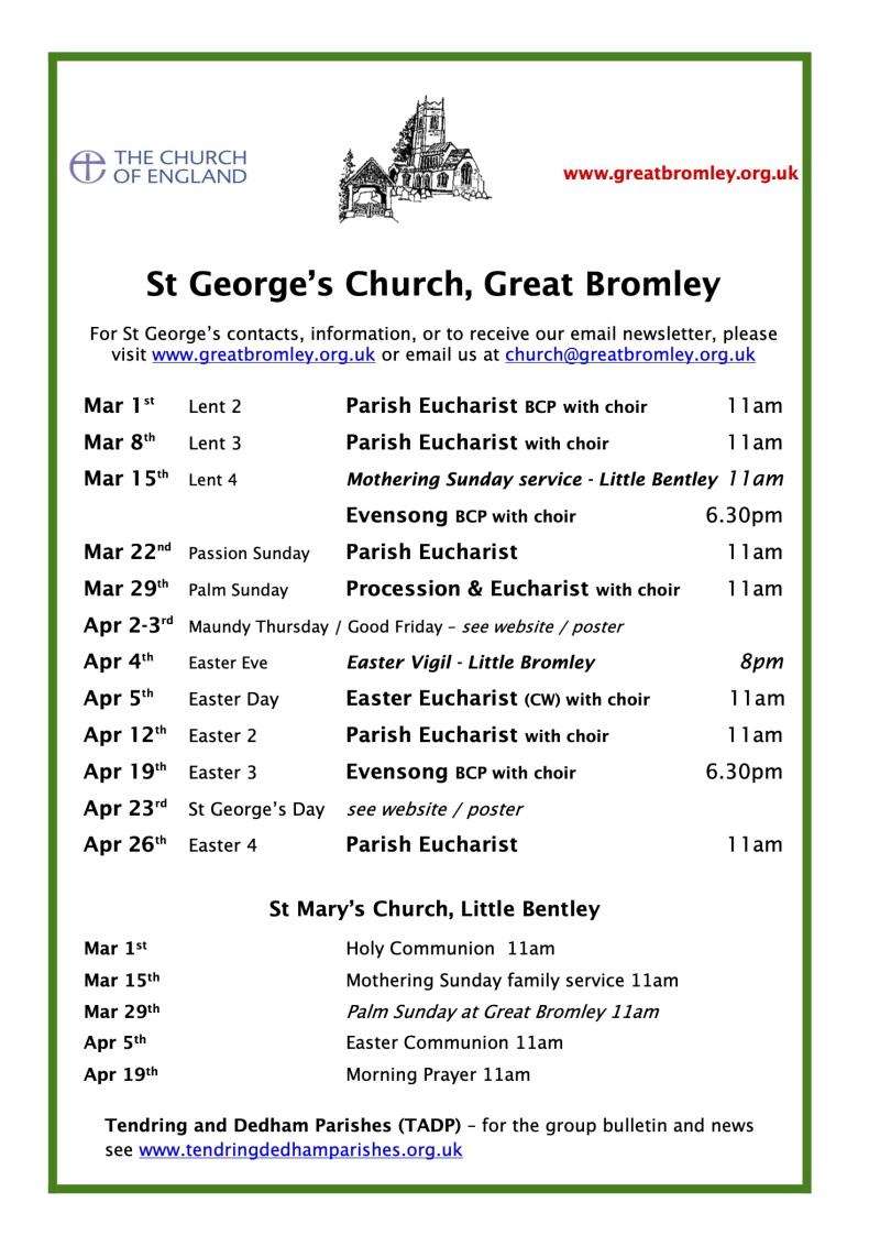 We are on YouTube: St George’s Church, Great Bromley YouTube Channel